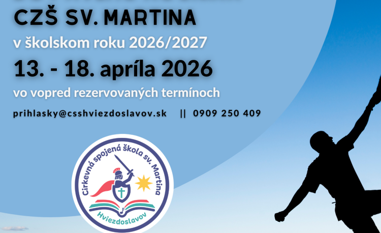 Zápis do prvého ročníka v šk. roku 2026/2027 bude prebiehať v termínoch 13.4.2026 – 18.4.2026 v presne stanovených časoch (cez pracovný týždeň od 14:00-17:40, v sobotu od 8:30 do 12:30), pričom, prosíme, platí nasledovné: